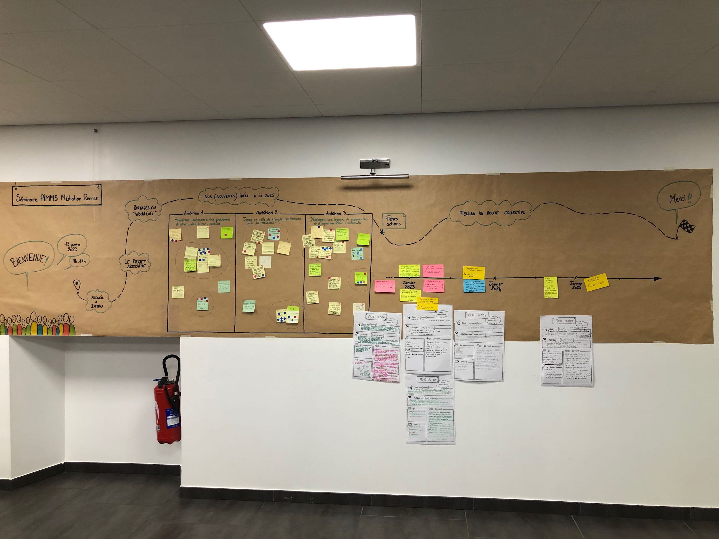 En atelier, les visuels interactifs de la facilitation graphique guident les réflexions des participants : participation active, créativité et implication sont favorisées.